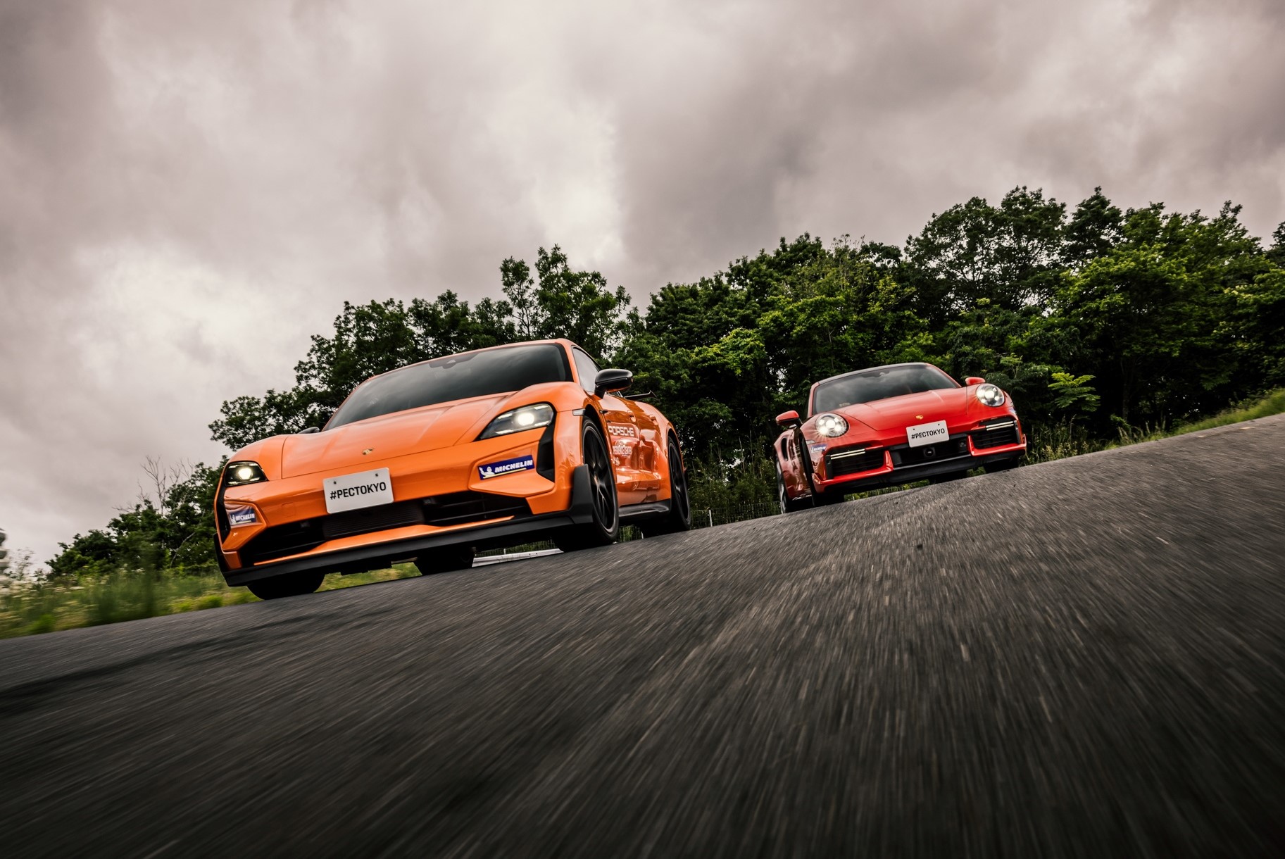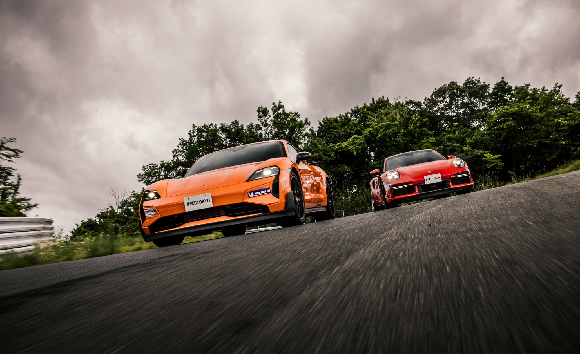 ポルシェドライビングコーチの運転でPEC東京の43ヘクタールの広大なトラック全体をご案内します。